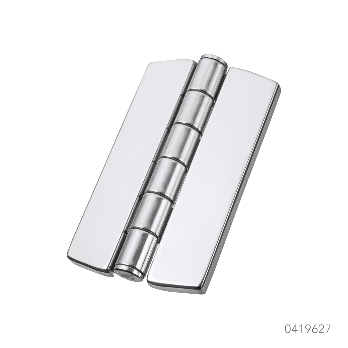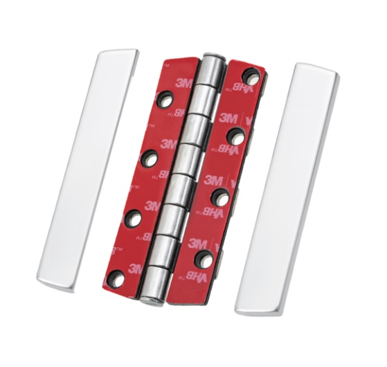 - Piano-style hinge provides constant torque throughout the entire range of motion. - Holds door open at any desired angle without torque adjustment. - Designed to fit various door sizes including overhead door, baitwell lid, glove box, access door, interior door, anchor locker, electronic panel, hatch, etc. - Easy installation with 3M VHB double-sided tape. - The cover can be removed by using a heat gun or hair dryer. - Innovation and beauty combined. - Passed 10,000 times cycle test and lost less than 20% on torque; 20,000 times lost 25% or less only. - Passed 500-hour salt-spray test. - Screw size M4 or #8.